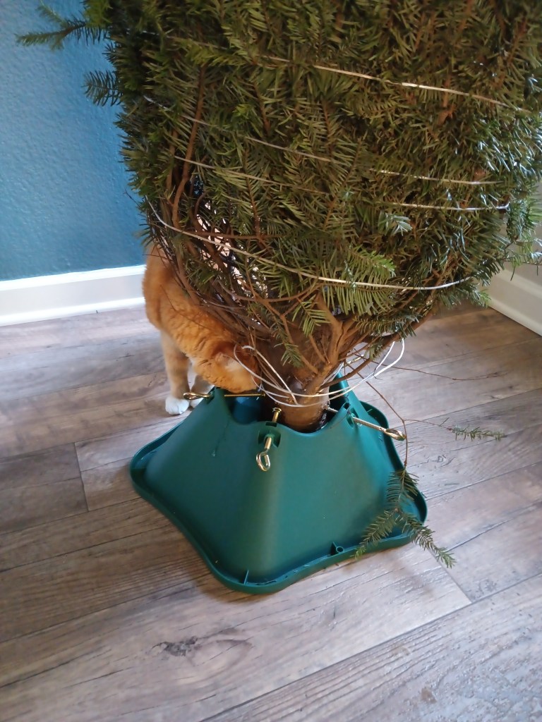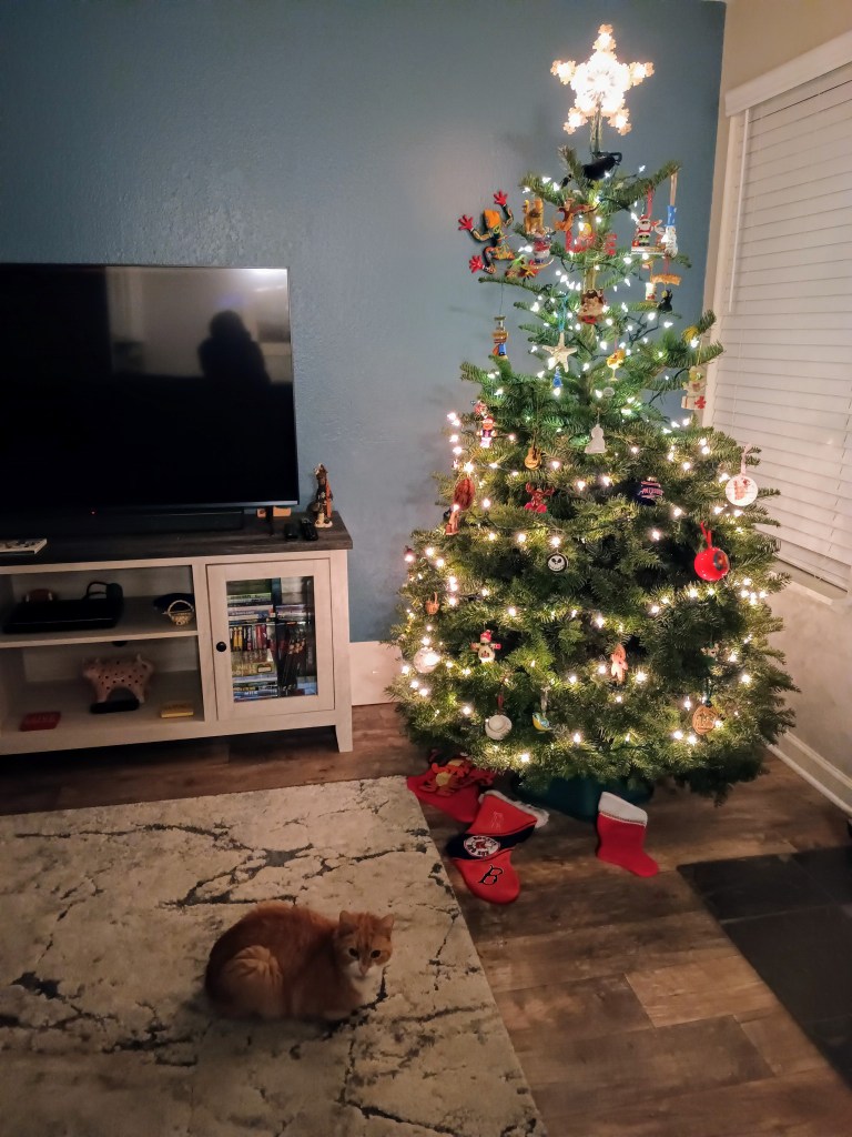 Well here we are, starting another new year. I’m looking forward to another 12 months of naps, treats and mischief! But one thing I am sad about is that our beloved Christmas tree will come down today. I have enjoyed lying underneath it and drinking the water at its base, which irritates my mamas to no end. But because they love me so much, they went out and bought me my own little tree, with lights and all, which they plan to leave up year-round!