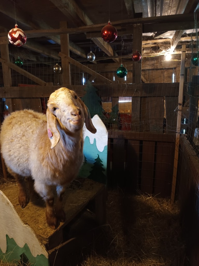 Not only was Washougal River Christmas Trees a beautiful place, but it had a festively decorated barn full of animals for viewing and petting. My mamas just adore animals, so they spent a while in the barn and at a couple of outdoor pens before launching their tree search. I can’t tell whether Sierra here has been hitting the eggnog, or if she’s just had enough of the holiday hoopla already.