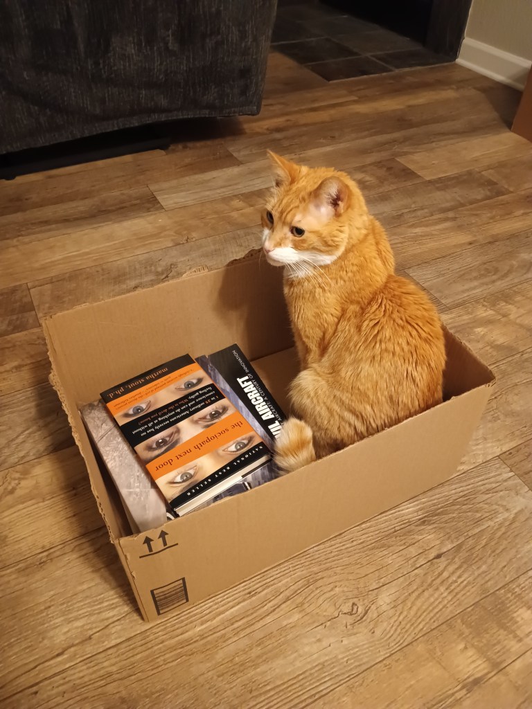 Then boxes started being packed, and small pieces of furniture removed. I knew the drill, seeing as how this would be my third move since joining the family, and my second in a year. Still, I was nervous and afraid they might leave me behind, so I tried to stow away in a box. Usually I’m pretty good at hiding, but I clearly wasn’t thinking this attempt through.