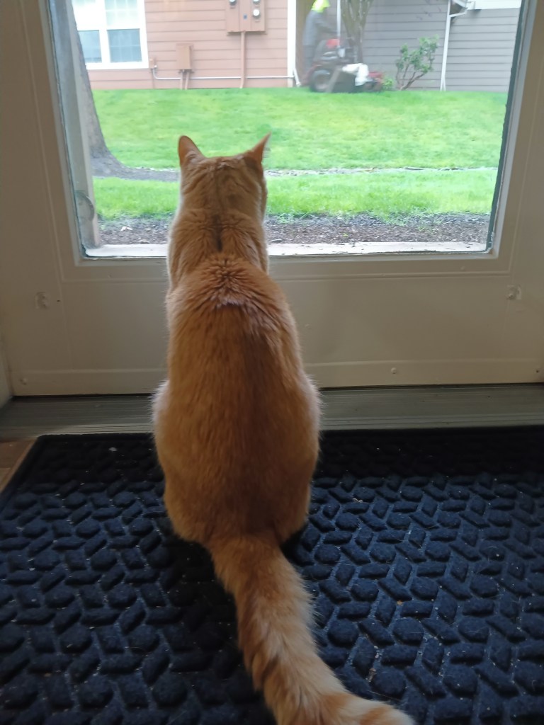 We live in an apartment, which is kind of interesting. Sometimes nice men with tools drop in unannounced to fix things while Those Two are away. Mama G used to do most of the fixing back at the house in Connecticut, but she was tired of fixing things, and that’s part of the reason they decided to rent. Mama C had grown tired of mowing, weeding, raking and all the other yard work that seemed to consume much of her spare time in the spring, summer and fall. Now I get to watch some guy zip around on a machine and accomplish in minutes what used to take Mama C hours!