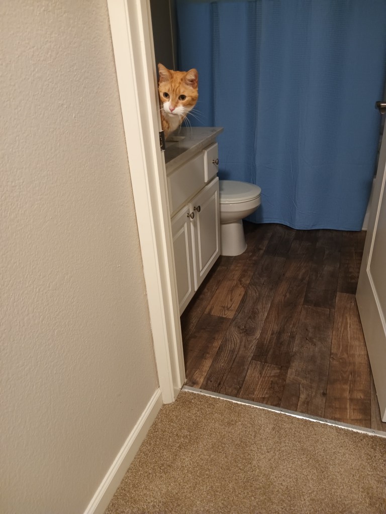 And then I was introduced to what turned out to be my new litter box. It was really fancy! As it turns out, this entire bathroom is all mine! All of my food, treats, litter and other supplies occupied the vanity draws and space under the sink. So this is where Mama G had been the last few weeks. Like Lewis and Clark, she had set out west to explore and set up camp!