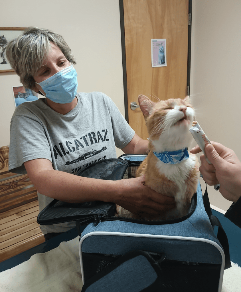 Unfortunately I don’t have a photo of Dr. Hagerman to post, because my personal photographer messed up that shot, but you can take my word for it that she was very gentle as well, knowledgeable, personable and thorough. Because I’m now considered a senior kitty and am having a few issues, she even gave me a kind of cognitive test, which I passed with flying colors! Not to sound like another orange guy …