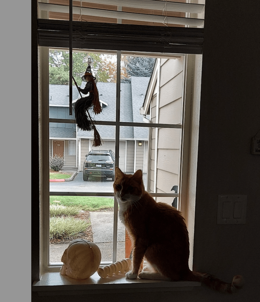 Well it’s time again for our favorite holiday! I’m just hanging out, eagerly awaiting our first trick-or-treaters. Now that we live in an apartment complex, my mamas have geared up for lots of visitors, unlike at our previous homes, when one small bag of candy “just in case” would do it, and then Those Two would inevitably have to eat all of it.