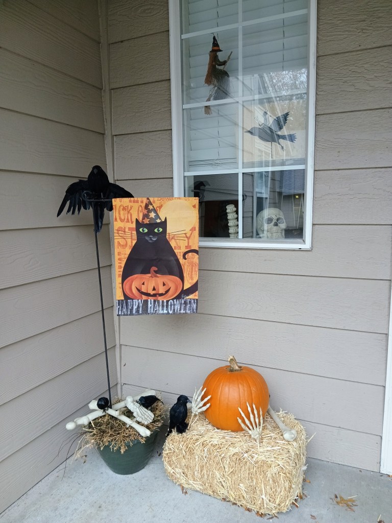 I thought they did a pretty good job of decorating outside, although I don’t know about those crows. The ones out back are very active and keep me entertained, but this bunch is the laziest I’ve ever seen!