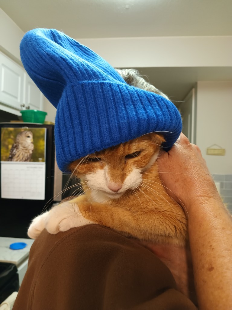 Mornings have been pretty chilly in our part of Washington lately, so Mama G bought a new hat. Apparently this style of hat is an essential part of “the PNW look,” and Mama G has spent a good part of her life trying hard to fit in — with mixed results, I might add.