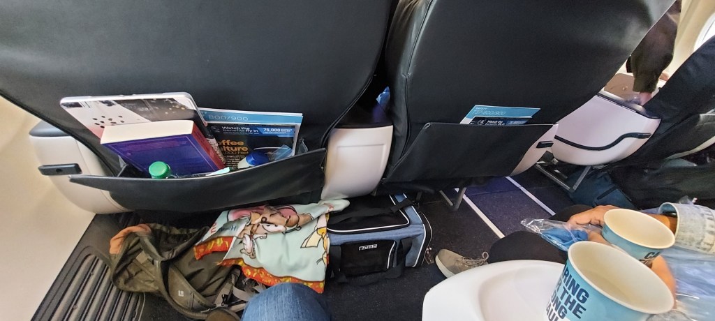 So I started to think I’d be in for a real treat, maybe stretching my legs, drinking some sparkling wine and watching a movie. But unfortunately it turns out that the rules for two-legged and four-legged passengers are quite different, and I got stuffed under the seat in front of Mama C!